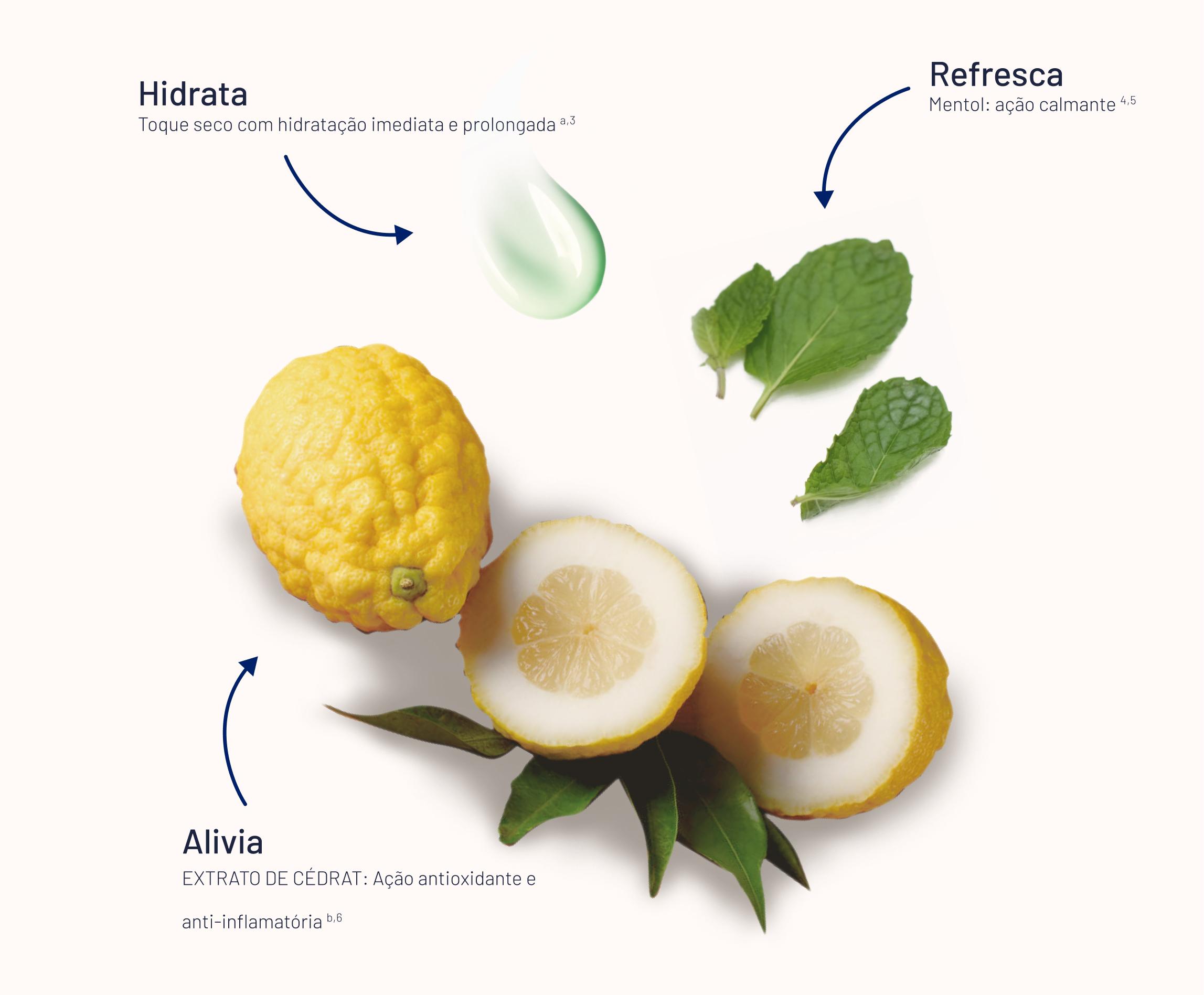 Alívio imediato da sensação de pernas cansadas com hidratação prolongada com absorção imediata e toque seco com refrescância que alivia o desconforto. 1,4